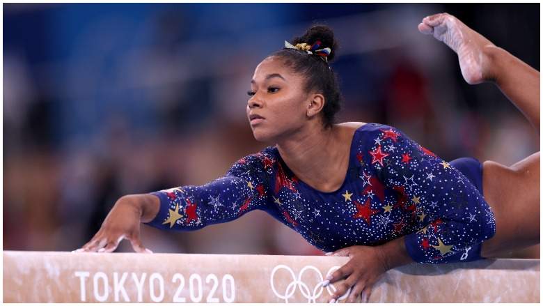 Jordan Chiles competes on the steadiness beam on the Ariake Gymnastics Middle through the girls’s qualification on the second day of the Tokyo Olympics on July 25, 2021.