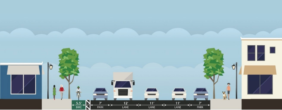 As a substitute of the present configuration of three 12-foot lanes, the up to date hall may have two 11-foot lanes and one 12-foot lane to accommodate the expanded bike lanes. There are 7 foot parking lanes on both facet of the road and the bike path and buffer on the suitable. The reconfiguration ends in a web lack of about 15 avenue parking areas throughout the couplet, or about two or three per block, in response to WSDOT.